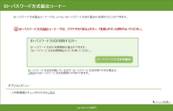 注意事項を読んで、「ID・パスワード方式の利用開始」をクリックします。