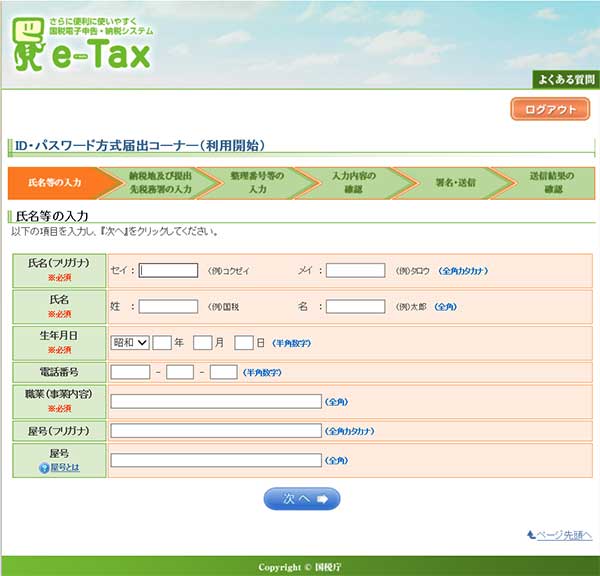 ここでは、マイナンバーカードとカード読取装置が無くてもe-Taxで電子申告ができる「ID・パスワード方式の届出」をする手順を解説します。