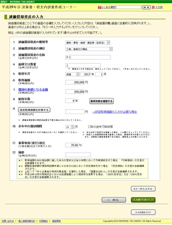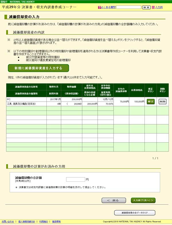 前年度のデータを利用して始めると、前年のデータを引き継いで入力されます。