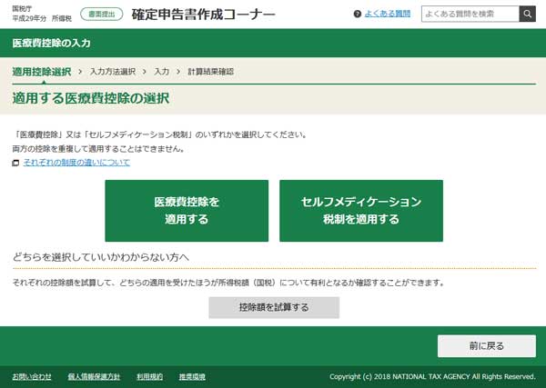 「医療控除」の項目で、医療費控除の種類を選択します。