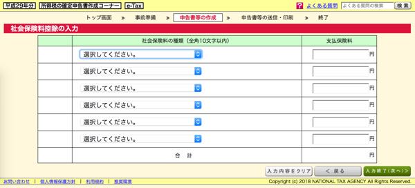 入力が終わったら「入力終了(次へ)」をクリックして「所得・所得控除等入力」画面へ戻ります。