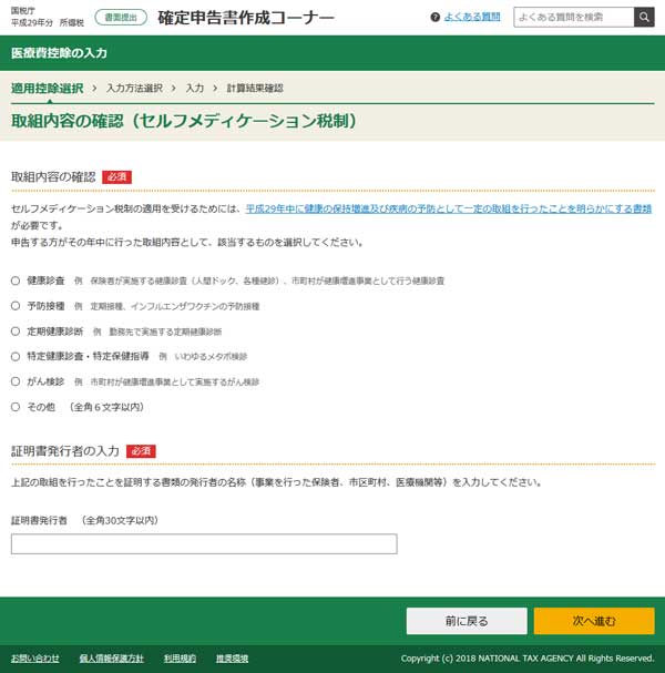 入力の要領は、「セルフメディケーション税制」と同じです。
