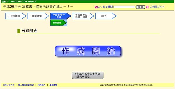 国税庁サイトの「確定申告書等作成コーナー」で青色申告書を作成してみましょう。