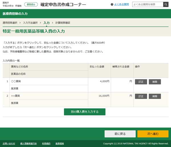 入力の要領は、「セルフメディケーション税制」と同じです。