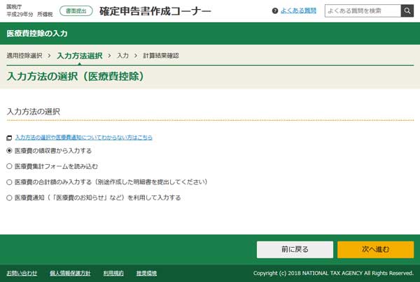 「医療費控除」を選択した場合は、医療費集計フォームや医療費通知書を利用できます。