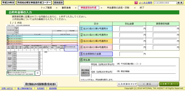 入力が終わったら「入力終了(次へ)」をクリックして「住所・氏名等入力」へ進みます。