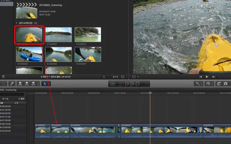 イベントブラウザのクリップをプロジェクトのタイムラインに配置します。