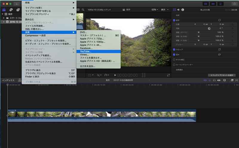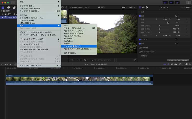 Final Cut Pro Xでは、完成したムービーを書き出すには『共有』で行います。
