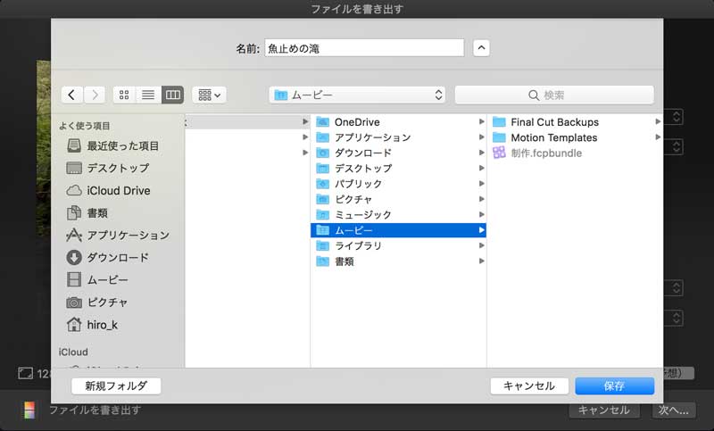 「次へ」を押すと保存先ダイアログが表示されるので、ファイル名と保存先を設定して「保存」を押します。