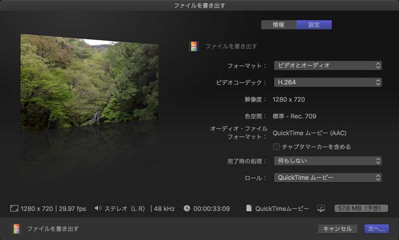 Compresserがインストールされていれば、メニューから「Compresserに送信」を選択して、Compresserでエンコードすることもできます。