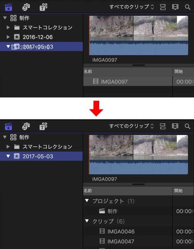 イベントを整理するには、イベントを別のイベントにドラッグすることで一つにまとめることができます。