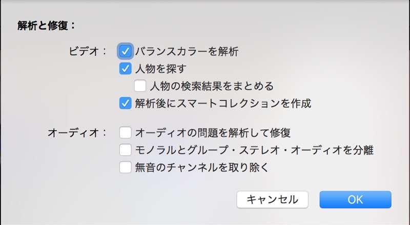メディアの読み込み時に「解析と修復」をチェックしてクリップを解析することもできます。
