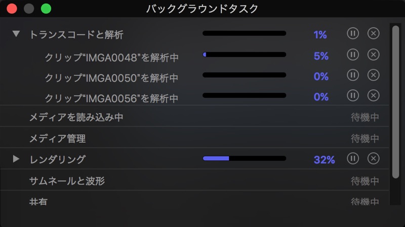 解析状況は、Commandキー+9で「バックグラウンドタスク」を開いて確認できます。