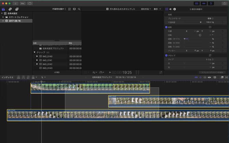 また、複数のクリップを編集後に色補正などのエフェクトをクリップ全体に対して適用する場合に、複合クリップを利用することで作業を効率的に行うことができます。