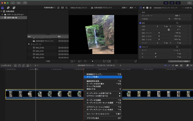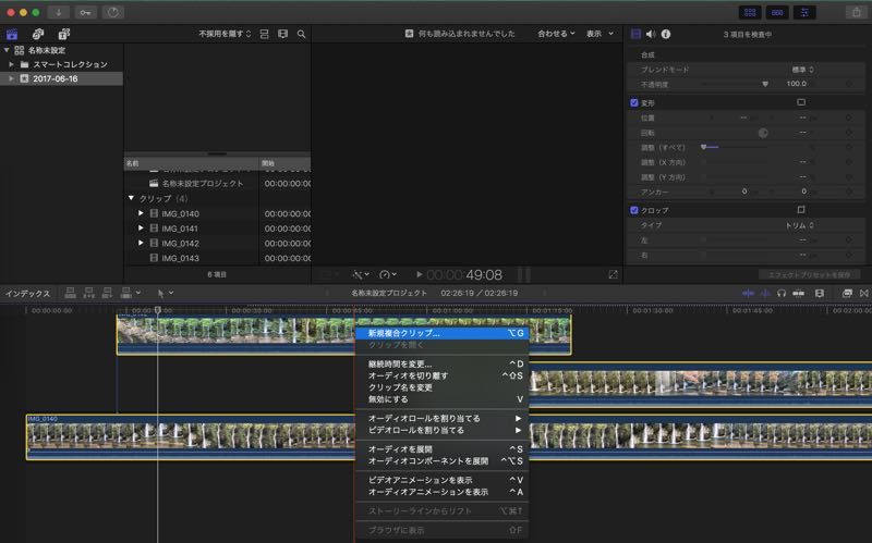 編集したい複合クリップを選択して、コンテキストメニューを呼び出します。
