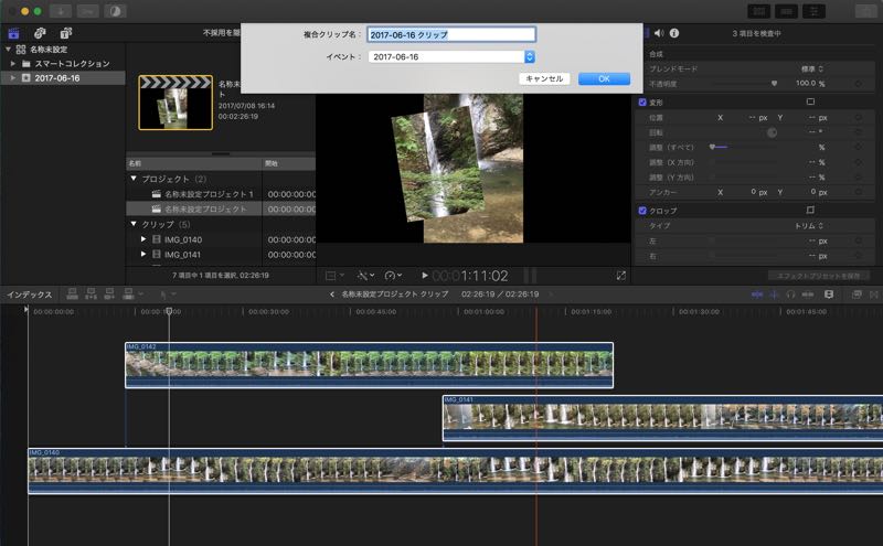 複合クリップに名前をつけ、保存したいライブラリを選択して「OK」をクリックします。