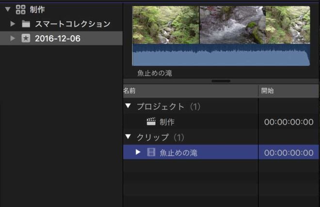プロジェクトを開くとタイムラインに表示されます。