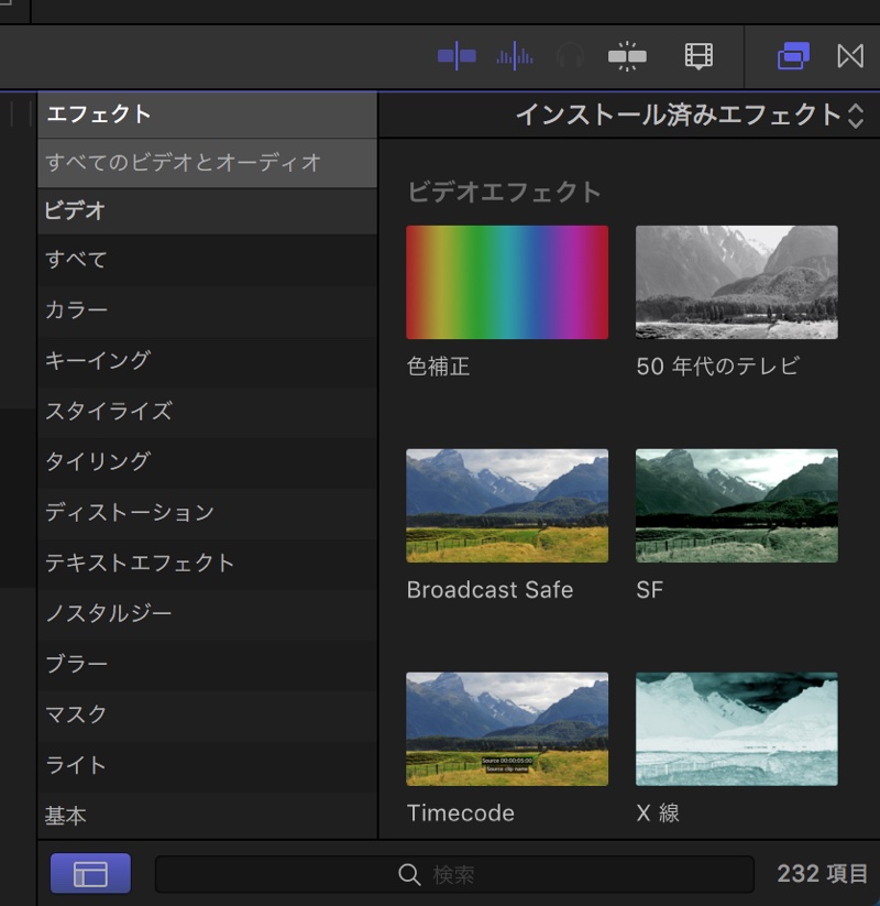 エフェクトは、エフェクトブラウザの中に多数用意されています。