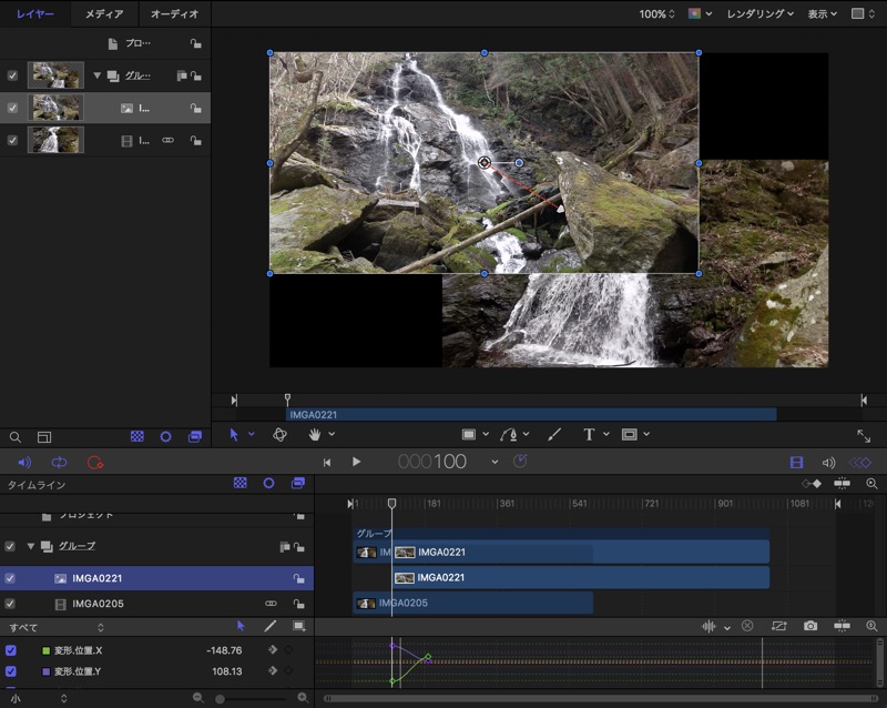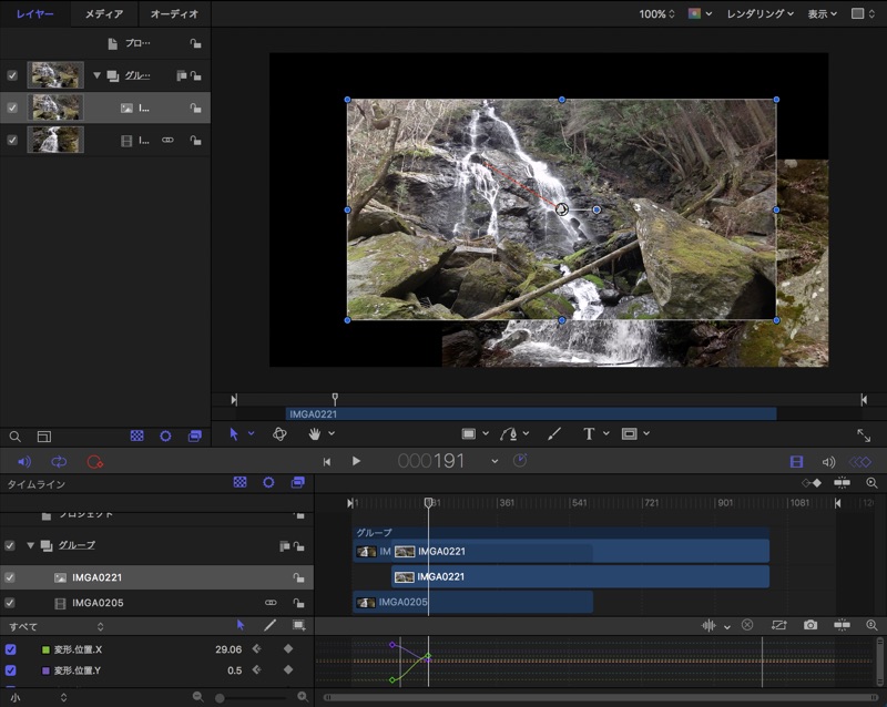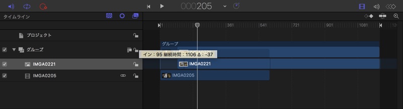 マークした位置から次のマーク位置まで移動や変形、その他の操作がそれぞれのタイムラインにオブジェクトごとに記録されます。
