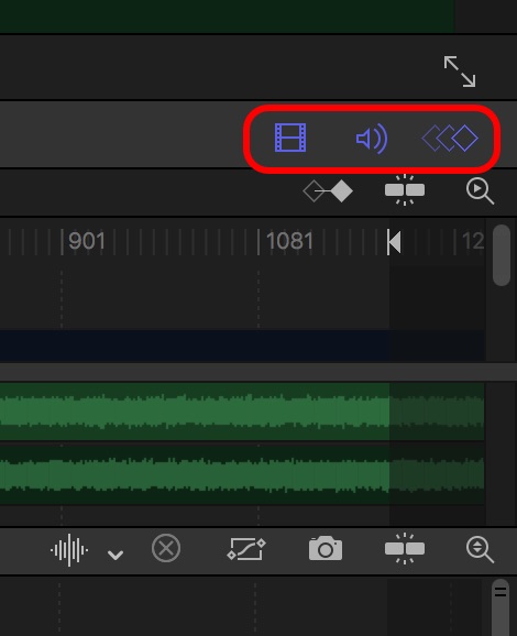オーディオやアニメートは、タイムライン右上のアイコンで表示/に表示を切り替えます。