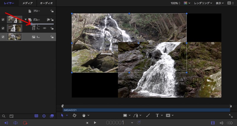 適用したフィルターは、レイヤーの該当映像の下に表示されます。