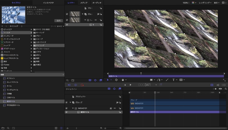 タイムラインでフィルターの適用時間を設定したり、フィルターインスペクタでフィルターの設定を変えてフィルターを操作します。